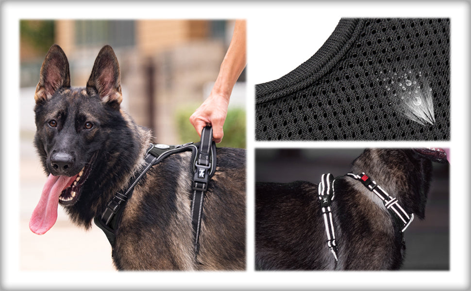 Your dog will enjoy the daily walk in this comfort dog harness! Made of durable nylon oxford and padded with soft cushion to protect your dog's skin. Breathable air mesh keeps your dog cool during outdoor activities, soft padding prevents dog injuring, giving extra comfort and protection.