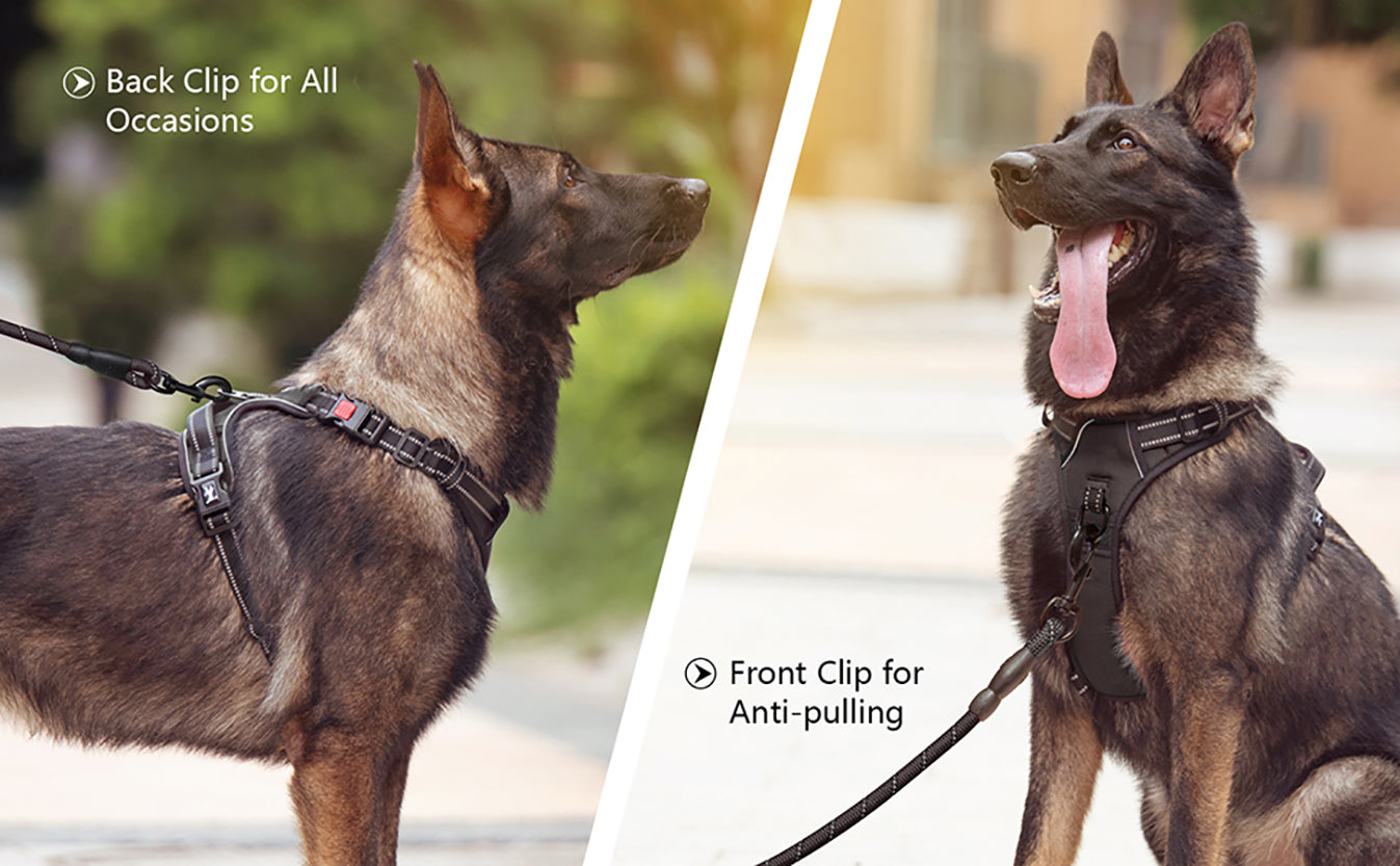 The Front Hook Loop is great for keeping dogs from pulling by flipping them around to face you, so they will quickly learn to stop pulling.